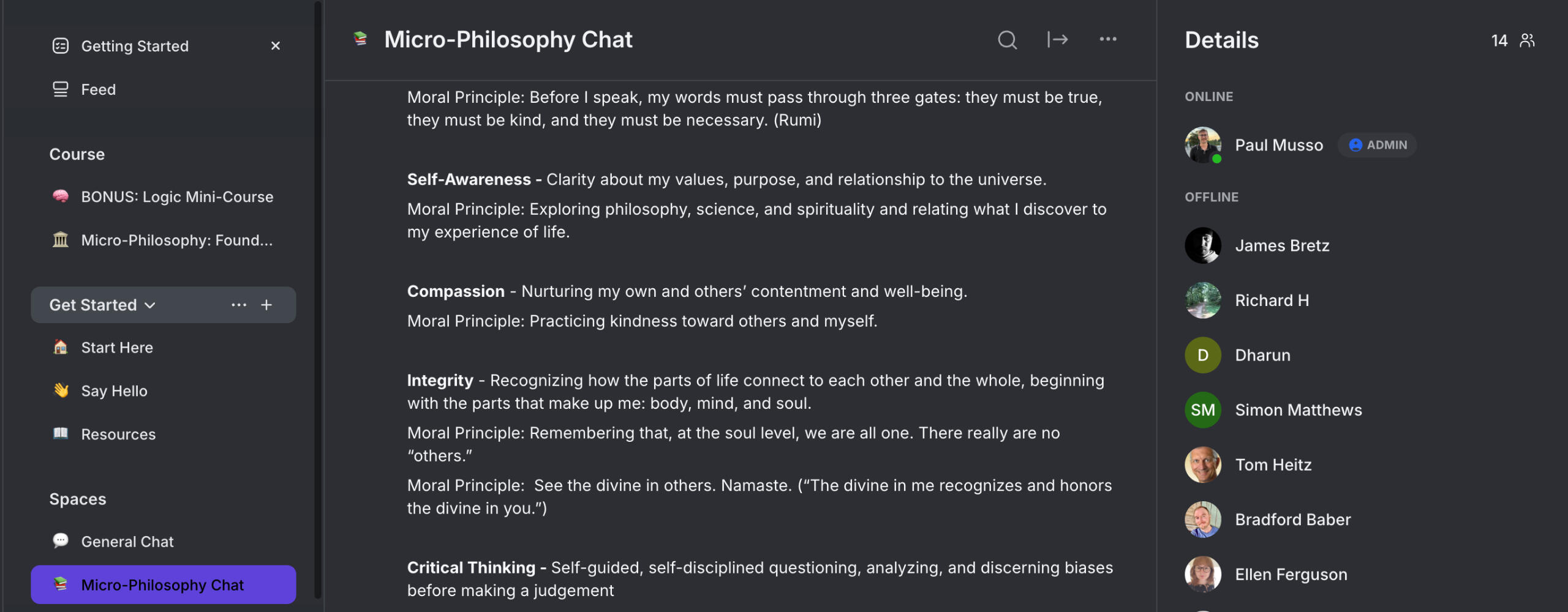 Although philosophy had completely transformed my life and literally rewired how I think, I was still missing something.At some point during my philosophical education, I made a huge mistake.I became a consumer of philosophy, rather than a practitioner.I read over a thousand books, and even taught classes on subjects such as: greek philosophy, ethics, metaethics, philosophy of law, philosophy of science, aesthetics, and political philosophy.But I had committed the cardinal philosophical sin.I had stopped thinking for myself.The result was that even after studying all of the major figures and thinkers, and understanding much of what they thought, I didn't really know what I thought.I didn't know what my own philosophy was.And this had serious consequences for my life.Without my own philosophy, I struggled to make important decisions because I didn't even know what I to aim at beyond what's right in front of me.I struggled to live with conviction in my beliefs, because I did not have a clearly articulated system of values.The result was that, in many ways, I was still my old self, but I had just became smarter and more knowledgeable about philosophy along the way.And this bothered me deeply.Don't get me wrong, studying philosophy is incredibly beneficial in many ways.But if you really want to have change yourself on a fundamental level, you have to take what you learn and make it your own so that you can live it.It was up to me to take that knowledge and do something with it.So I set out on a mission to figure out the answer to this one question:"Given everything I know about philosophy, what would be the best way to build my own philosophy from scratch?"I wanted to leverage my deep knowledge of philosophy to build a system that anyone could use to start thinking for themselves about their fundamental beliefs, values, and purpose in life.Eventually, this led me to create the concept of a micro-philosophy.A micro-philosophy is concise philosophy of life that represents someone's fundamental beliefs, values, and moral principles.It is the consciously held system of beliefs upon which someone lives.After writing about these ideas on Substack and X, I noticed that many people desperately wanted to know how to build their own micro-philosophy.And that is what led me to developing this course.